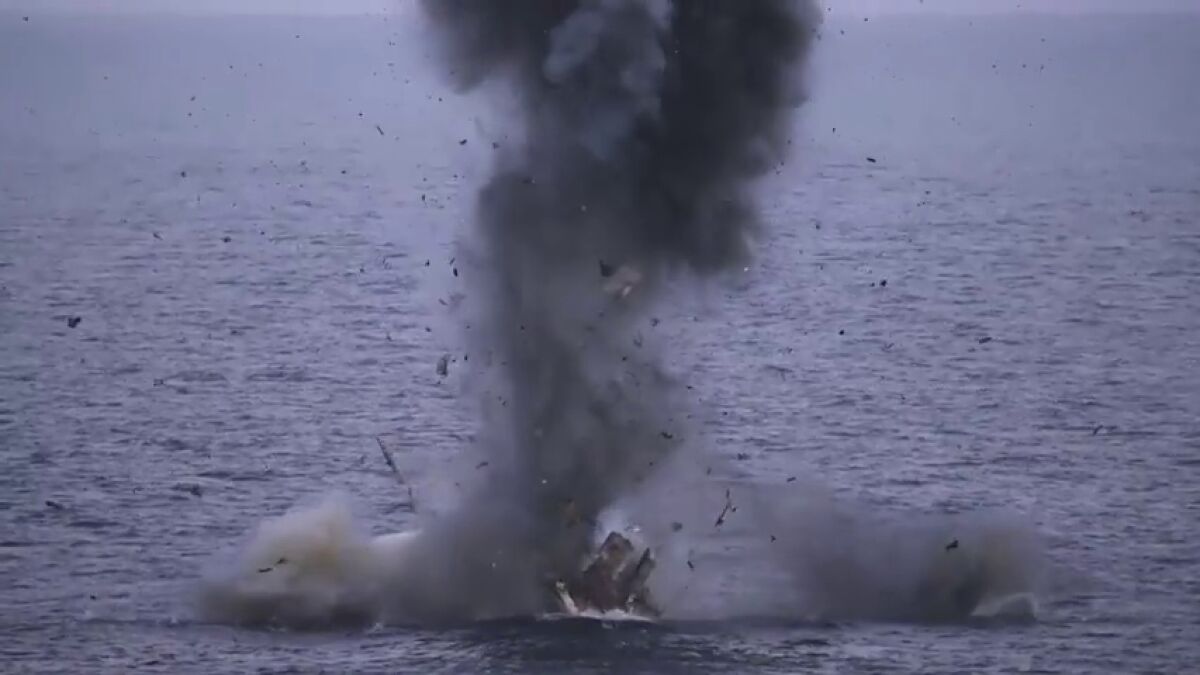 En el vídeo se capta el momento en el que explota un barco tipo 'ballenero' relacionado con la piratería en las costas de Somalia. El buque español 'Castilla' lo ha neutralizado. Esta operación se ha efectuado en el marco de la operación 'Atalanta'.
