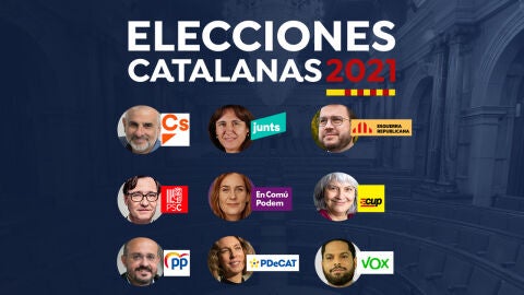 Las elecciones catalanas de 2021 que se celebran este 14 de febrero decidirán el porvenir de la sociedad catalana en unos comicios marcados por la pandemia de coronavirus. Repasamos los candidatos a las elecciones al Parlamento de Cataluña de Ciudadanos, Junts per Catalunya, Esquerra Republicana de Catalunya, PSC, Catalunya En Comù-Podem, la CUP, PP, PdeCAT y Vox.