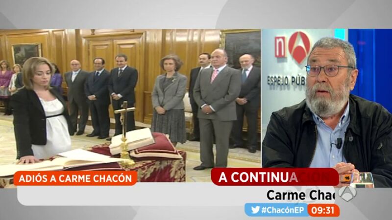 Cándido Méndez, amigo personal de Carme Chacón ha recordado con emoción a la primera mujer en España que ha ocupado el cargo de titular de Defensa en espejo Público. El ex-secretario general de UGT ha asegurado que él no le "cuesta trabajo, ni tengo que ponerme en la situación de que la hemos perdido para buscar palabras enaltecedoras. Era muy auténtica y tengo un recuerdo enorme de ella".