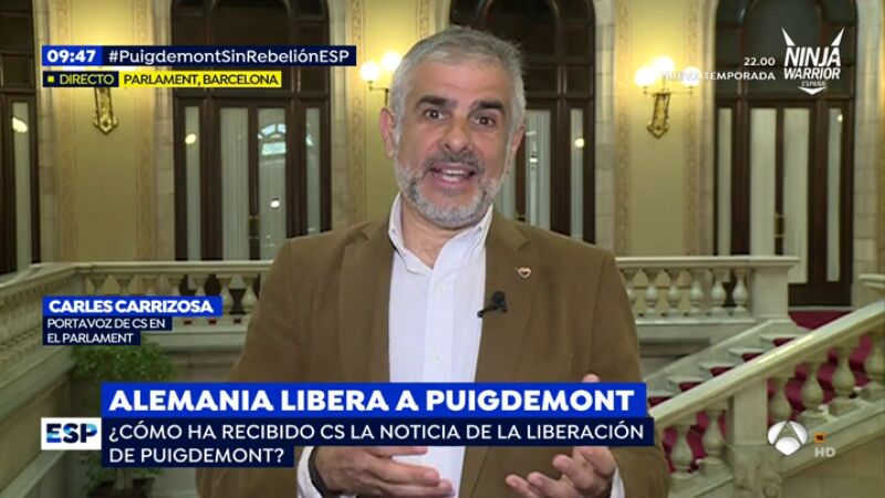 El portavoz de Ciudadanos en el Parlament cree que el caso del expresident de Cataluña solo ha sido tratado por una instancia y que aún cabe que la Fiscalía plantee un recurso a esta decisión. En ningún caso contempla que, tras esta decisión, Puigdemont sea de nuevo candidato a presidir la Generalitat porque "quien se ha fugado de la Justicia no puede ostentar una responsabilidad tan grande".