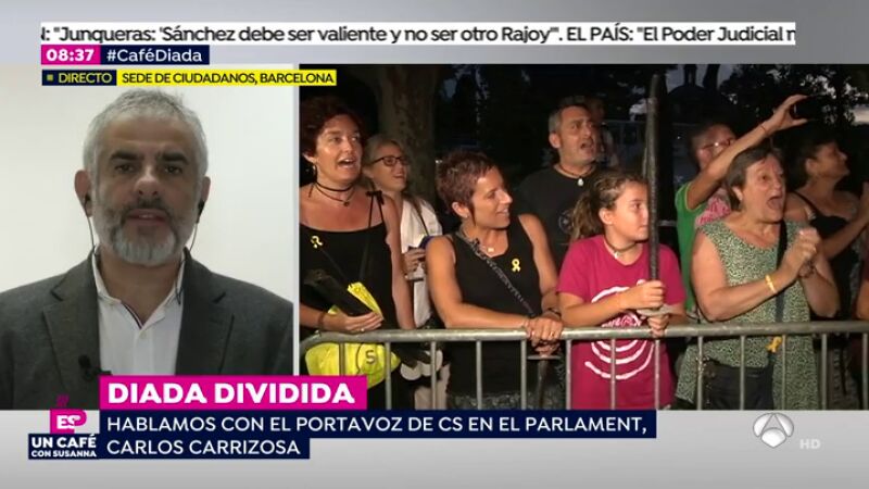 El portavoz de Ciudadanos en el Parlament, Carlos Carrizosa, ha acusado al Govern de haber "secuestrado" la Diada. Ha acusado a Quim Torra de hacer un discurso en el que "excluyó a todo aquel que no fuera independentista". Critica además un segundo acto "dedicado a la libertad de unas personas que están presas, no por sus ideas, sino por declarar la independencia y hacerlo llamando a la movilización en la calle".