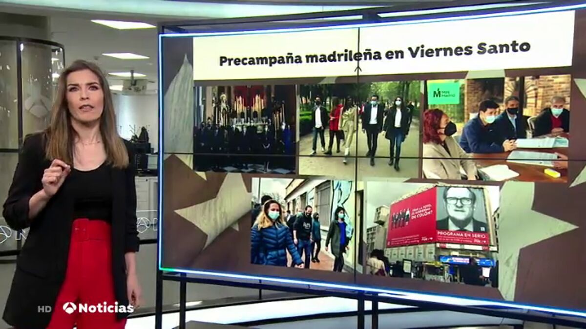 Los líderes de los principales partidos políticos han continuado su precampaña electoral esta mañana de Viernes Santo. Isabel Díaz Ayuso ha tenido que cancelar su visita a ver el Jesús de Medinaceli porque llevaba varios días con una fuerte tos y se ha realizado un test para ver si tenía coronavirus.