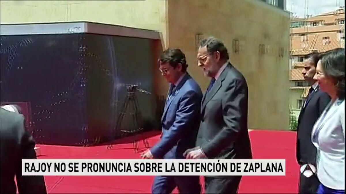 El presidente del Gobierno, Mariano Rajoy, ha evitado hacer declaraciones sobre la detención del exministro Eduardo Zaplana y solamente ha respondido estar "muy bien" a una de las preguntas, a la de "cómo están los ánimos".