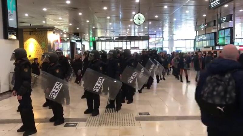 La protesta se ha trasladado ahora a las puertas de la estación, que está blindada por la Policía Nacional y los Mossos d'Esquadra y donde hay concentradas unas 300 personas.