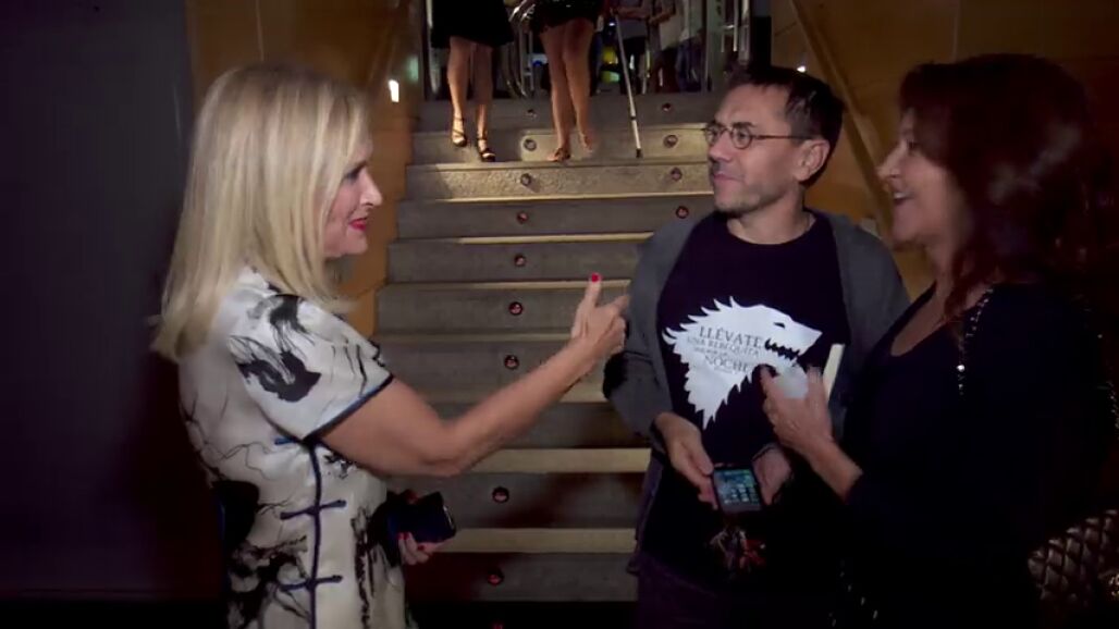 Cristina Cifuentes reaparece meses después de dejar la política. Ha asistido a la proyección de una película que habla de corrupción, "El Reino", donde ha coincidido con el fundador de Podemos, Juan Carlos Monedero.