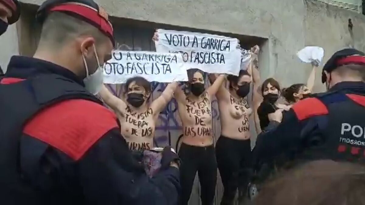 Cinco activistas de Femen protestan y llaman "fascista" a Ignacio Garriga mientras vota en las elecciones catalanas 2021