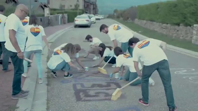 Ciudadanos ha tuiteado el vídeo de un grupo de voluntarios borrando este domingo las pintadas que "los comandos separatistas" hicieron hace meses frente a la casa del juez del Tribunal SupremoPablo Llarena.