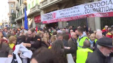 La pancarta en cuestión sostiene: "Derogación ley integral violencia de género. La LIVG vulnera el artículo 14 de la Constitución Española. Custodia compartida ya". Estaba previsto que la portavoz de Cs en el Parlament, Lorena Roldán, hiciera declaraciones a la prensa en la plaza Urquinaona de la capital catalana, donde varios centenares de personas se han congregado este viernes con motivo del Día de la Constitución, pero minutos antes de aparecer el partido ha enviado un mensaje cancelando su participación.
