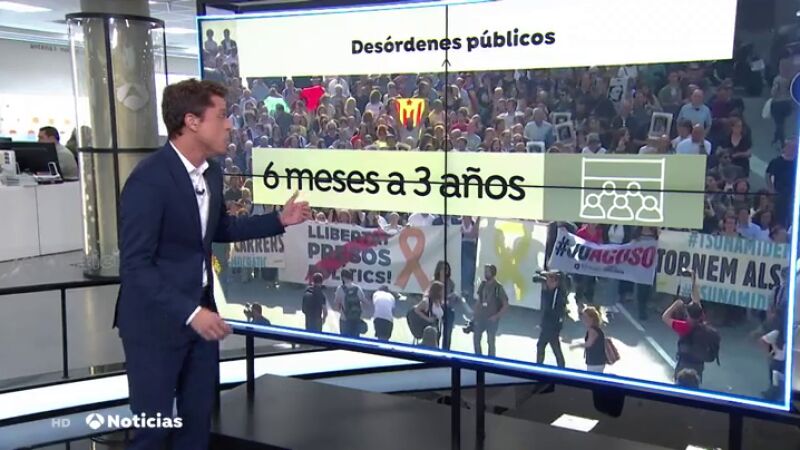 Si nos atenemos a las imágenes, según los expertos, esto sería un delito de desórdenes públicos, que suele ser castigado con penas de 6 meses a 3 años de cárcel. Cortar una carretera o una vía de tren sería el mismo delito pero con más pena: entre 1 y 5 años de prisión.