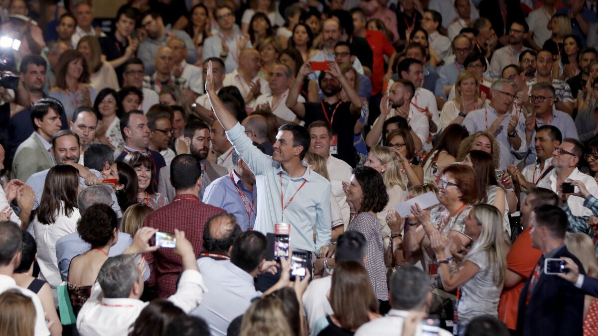 Con el lema 'Somos la izquierda', la asamblea ha arrancado con la aparición de Sánchez en el Palacio de Congresos de Madrid junto a la vicesecretaria general, Adriana Lastra, el secretario de Organización, José Luis Ábalos, y la presidenta, Cristina Narbona. Los compromisarios le han brindado un fuerte aplauso mientras le han coreado "¡presidente, presidente!" para reafirmar su liderazgo ante la nueva etapa que se abre.