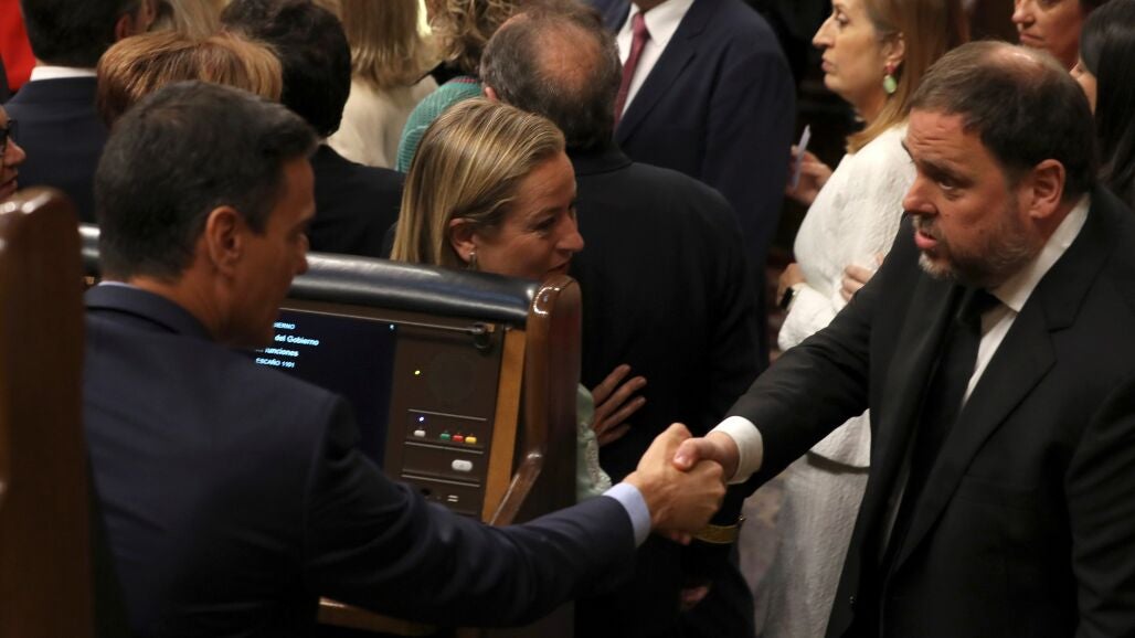 Pedro Sánchez y Oriol Junqueras han intercambiado unas palabras en el hemiciclo durante la sesión constitutiva del Congreso.