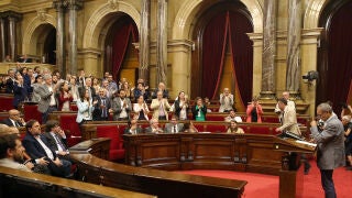 El portavoz parlamentario de Catalunya Sí Que Es Pot, Joan Coscubiela, ha arrancado esta tarde una cerrada ovación de los diputados de Ciudadanos, PSC y PPC, puestos en pie al grito de "democracia", en contraste con algún diputado de su propio grupo disconforme con su dureza contra Junts pel Sí (JxSí) y la CUP.