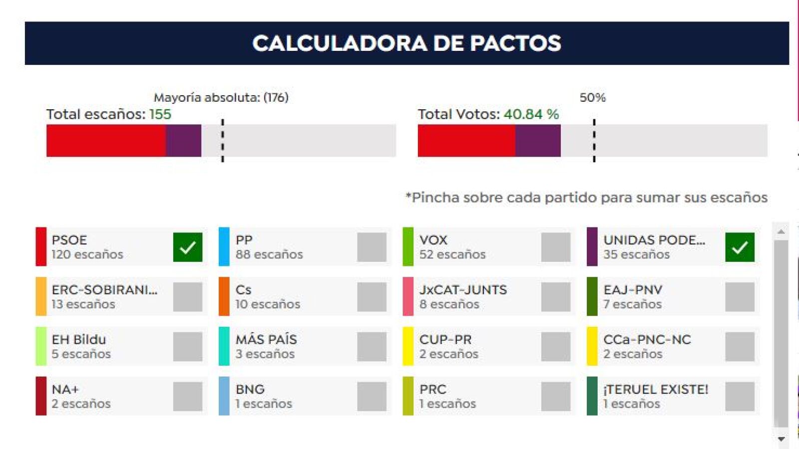 Consulta aquí los posibles acuerdos en esta calculadora de pactos