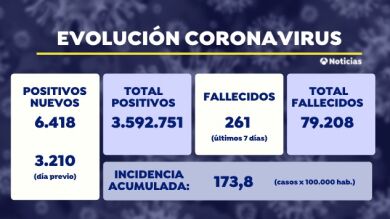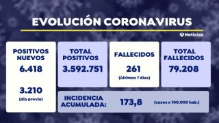 El número total de contagios por coronavirus en España asciende a 3.592.751 y el de muertes a 79.208 desde que comenzó la pandemia. Los datos siguen siendo preocupantes a pesar de haber salido ya del estado de alarma.