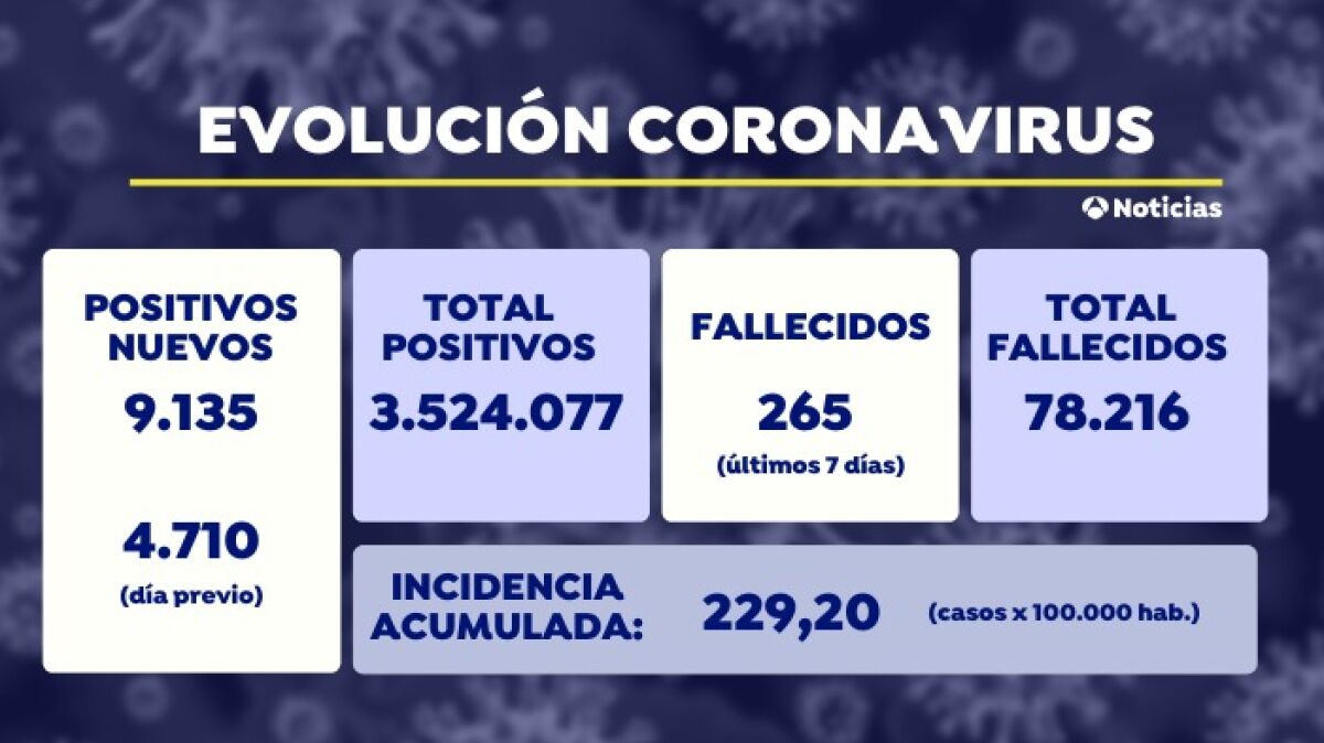 El informe refleja también 136 nuevas muertes por coronavirus con respecto al dato del pasado jueves, por lo que la cifra oficial de muertos desde el inicio de la pandemia alcanza ya los 78.216.