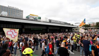 Decenas de independentistas protestan en la estación de Sants contra la sentencia del 'procés'