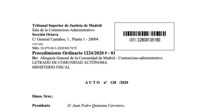 Consulta aquí el PDF sobre la resolución del TSJM tumbando las medidas restrictivas de Sanidad en 10 municipios de la Comunidad de Madrid por el coronavirus.