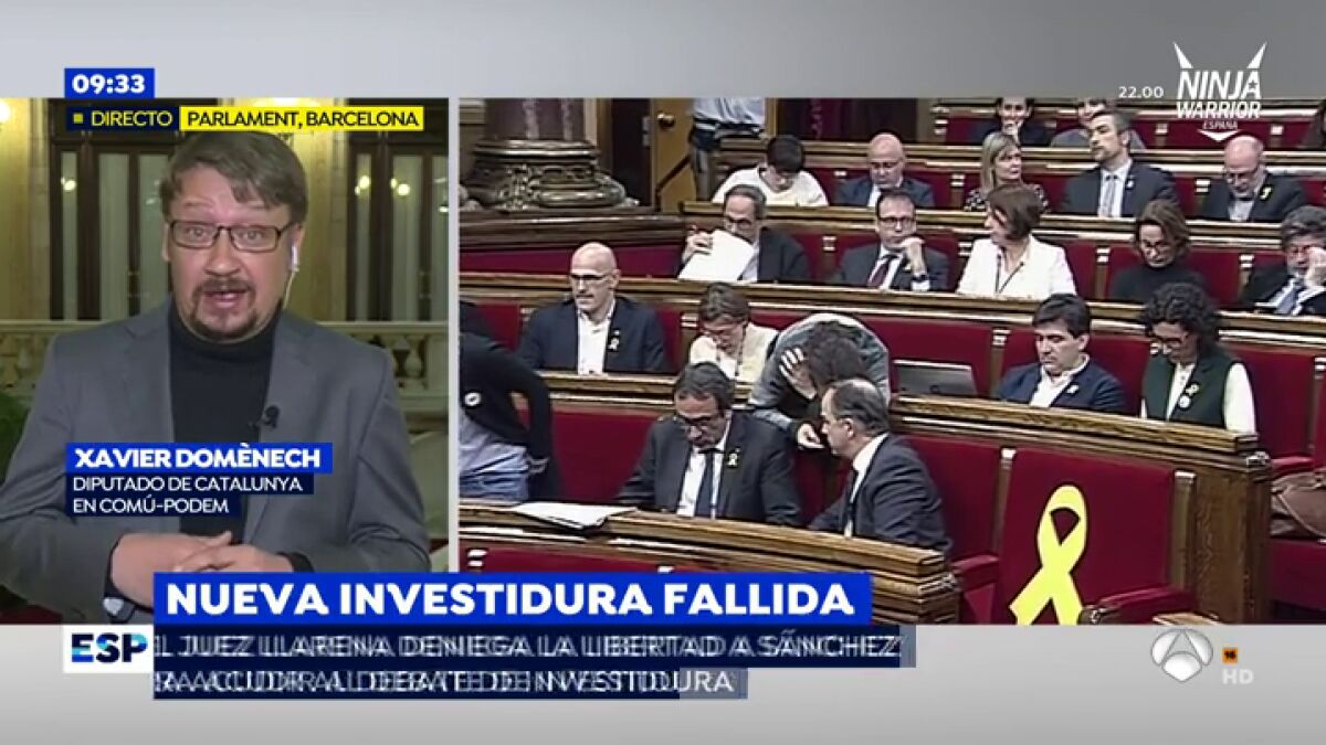 Xavier Domènech ha acusado en Espejo Público un "agotamiento" ante la situación que se vive en Cataluña durante los últimos meses. Tras la negativa del juez Llarena de dejar salir de prisión a Jordi Sànchez para un nuevo pleno de investidura, Roger Torrent se ha visto obligado a desconvocar dicho acto.