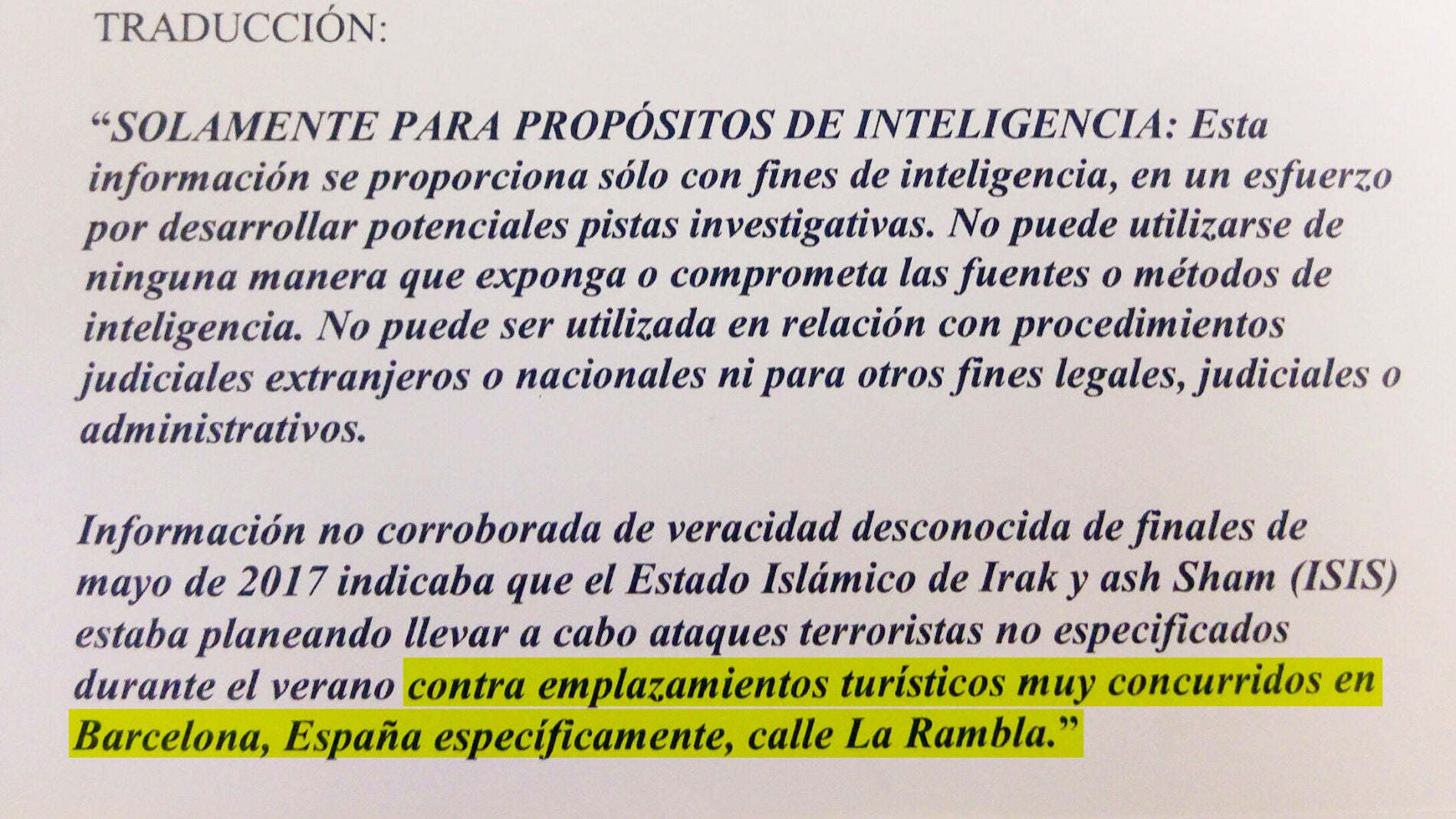 'El Periódico' también asegura en su edición de este viernes, en una información firmada por su director, Enric Hernández, que fuentes de la lucha antiterrorista española han confirmado a este diario que también recibieron este aviso procedente del NCTC estadounidense el 25 de mayo.