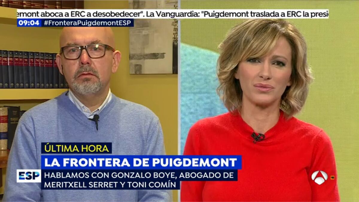 Gonzalo Boye, abogado de los exconsellers Meritxell Serret y Toni Comín, no cree que Carles Puigdemont acuda este martes a la sesión de investidura. "Creo que no va a ocurrir y acabo de ver en su cuenta de Twitter que incluso estaba bromeando al respecto", ha señalado.