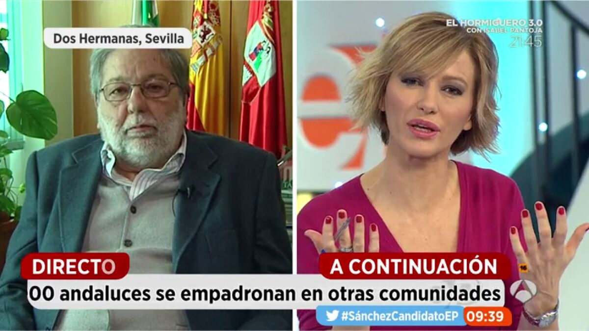 Pedro Sánchez ha elegido Andalucía, en concreto la localidad de Dos Hermanas, para anunciar su candidatura en la carrera de las primarias socialistas para liderar el partido. Espejo Público ha hablado con Francisco Toscano, alcalde del municipio, y defensor de Sánchez.
