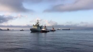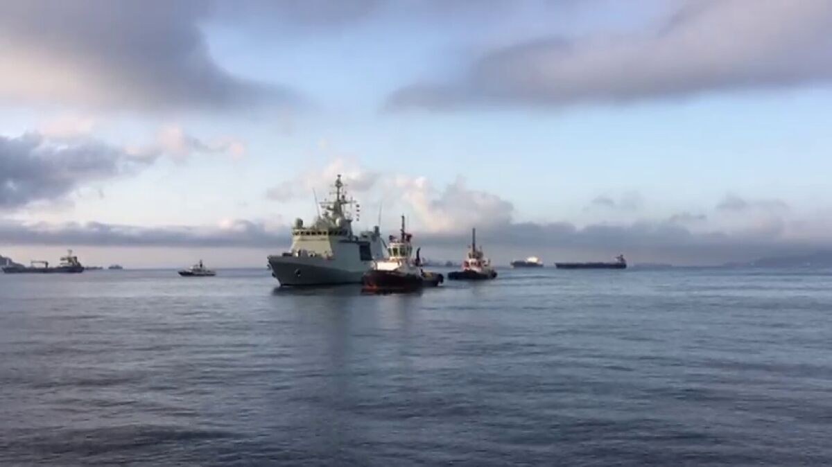 El buque Audaz de la Armada, que lleva a bordo a los quince migrantes que recogió en la isla italiana de Lampedusa, ha llegado este viernes en torno a las 8.00 horas de la mañana al puerto gaditano de San Roque.