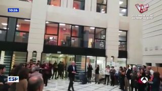 En un vídeo grabado por sus compañeros el pasado jueves, dos días después de conocerse la sentencia, y difundido por redes sociales, Gómez fue agasajado con dos minutos de aplausos en la sede de la Intervención General de la Junta de Andalucía, donde sigue trabajando como funcionario.