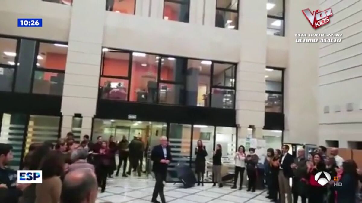 El exinterventor de la Junta de Andalucía absuelto en el caso de los ERE, recibido con aplausos por sus compañeros de trabajo