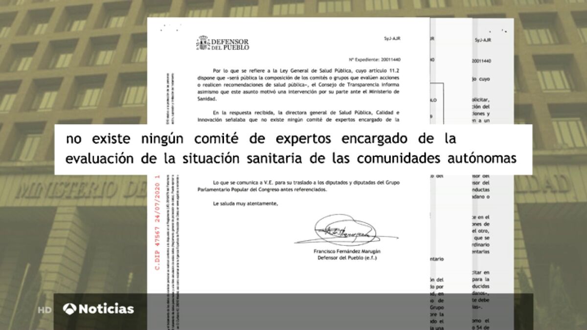 El Defensor del Pueblo, Francisco Fernández Marugán, aseguró que Transparencia también preguntó a Sanidad sobre la posible vulneración de la Ley General de Salud Pública. En su respuesta, la directora general de Salud Pública, Calidad e Innovación señalaba: "No existe ningún comité de expertos encargado de la evaluación de la situación sanitaria de las comunidades autónomas y que decida las provincias o territorios que pueden avanzar en el proceso de desescalada del confinamiento".