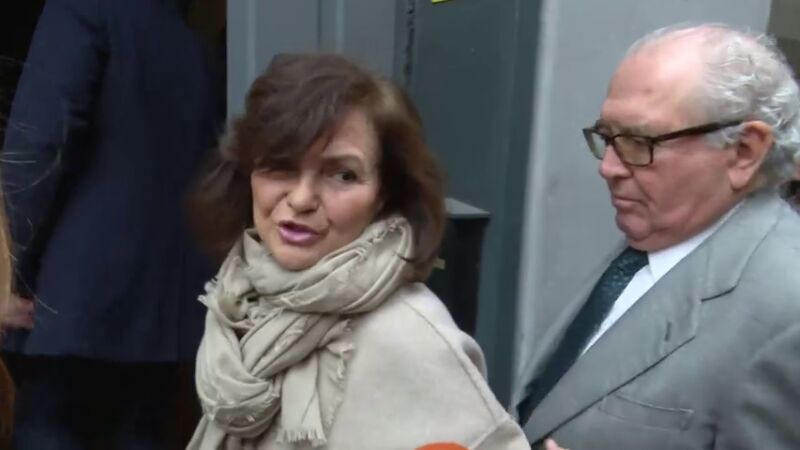 La vicepresidenta del Gobierno, Carmen Calvo, ha respondido a las preguntas sobre la regulación del taxi y los VTC, para arreglar el conflicto, que "es una cuestión de las comunidades autónomas, que tienen que negociar y encontrar una salida".