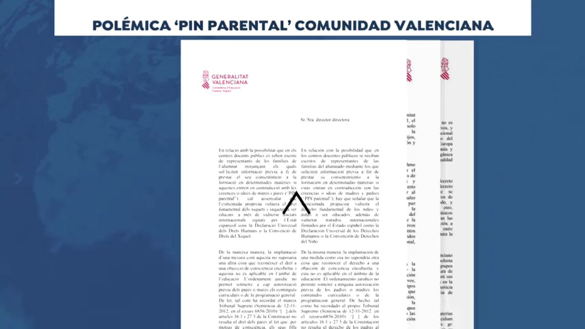 La consellería de Educación de la Comunidad Valenciana ha decidido remitir una carta a todos los directores de los centros escolares públicos con motivo del pin parental solicitando que la dirección del centro no se pronucie "por escrito" cuando les lleguen solicitudes de familias que piden información previa sobre las actividades realizadas en los centros.
