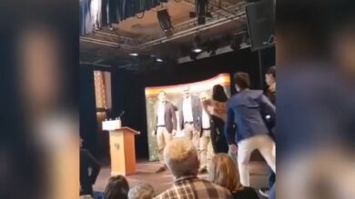 El momento en el que desalojan a una activista de Femen en un acto de Vox en Zaragoza
