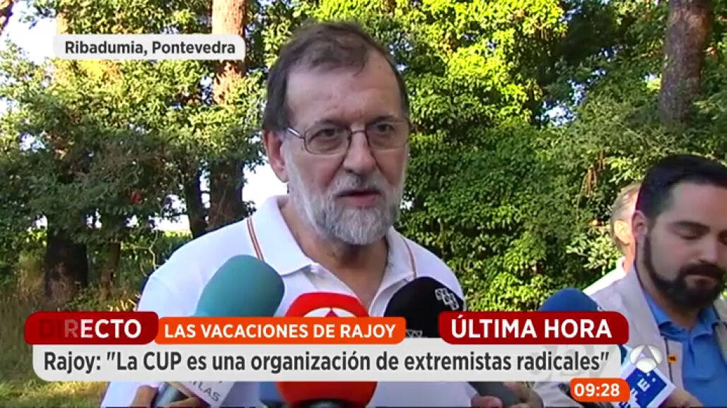 En relación al acto vandálico llevado a cabo por un grupo perteneciente a la CUP del pasado fin de semana en Barcelona a un autobús de turistas, el presidente del Gobierno declara que "la CUP es una organización de extremistas y radicales que van contra todo y contra todos".