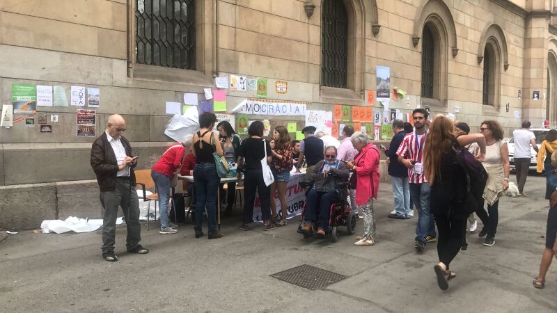A tan solo 48 horas de la votación, la estrategia independentista se basó en ocupar los centros asignados como locales de votación para evitar que fueran precintados. En algunos casos la dirección de los colegios permitió acampadas, torneos deportivos, bailes y cualquier actividad para permitir la presencia de activistas en estos centros.