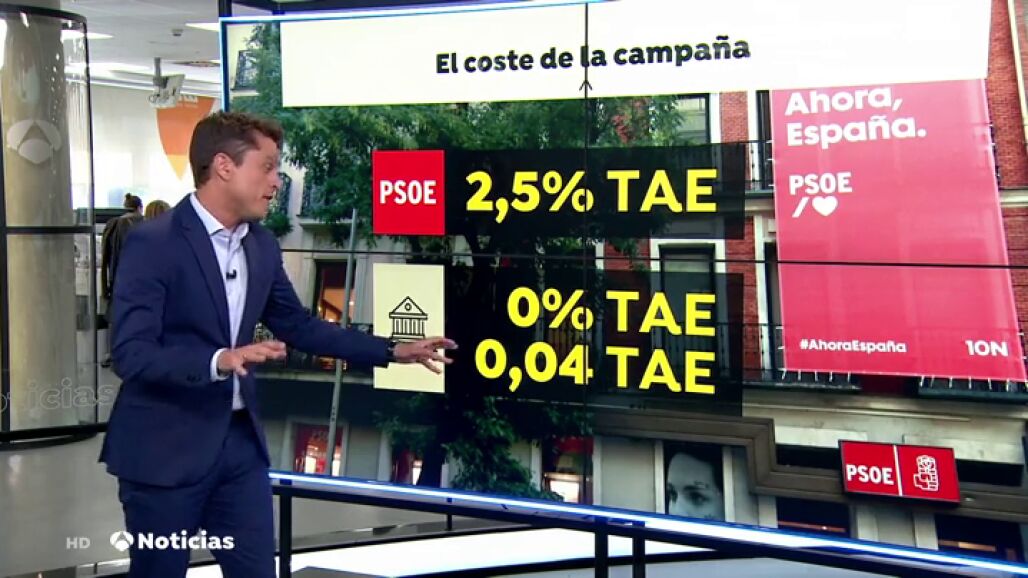 El 10 de noviembre se celebrarán las Elecciones Generales de 2019 para la presidencia del Gobierno, y el Partido Socialista Obrero Español (PSOE) ofrece un 2,5% TAE a quien le preste dinero para la campaña electoral.