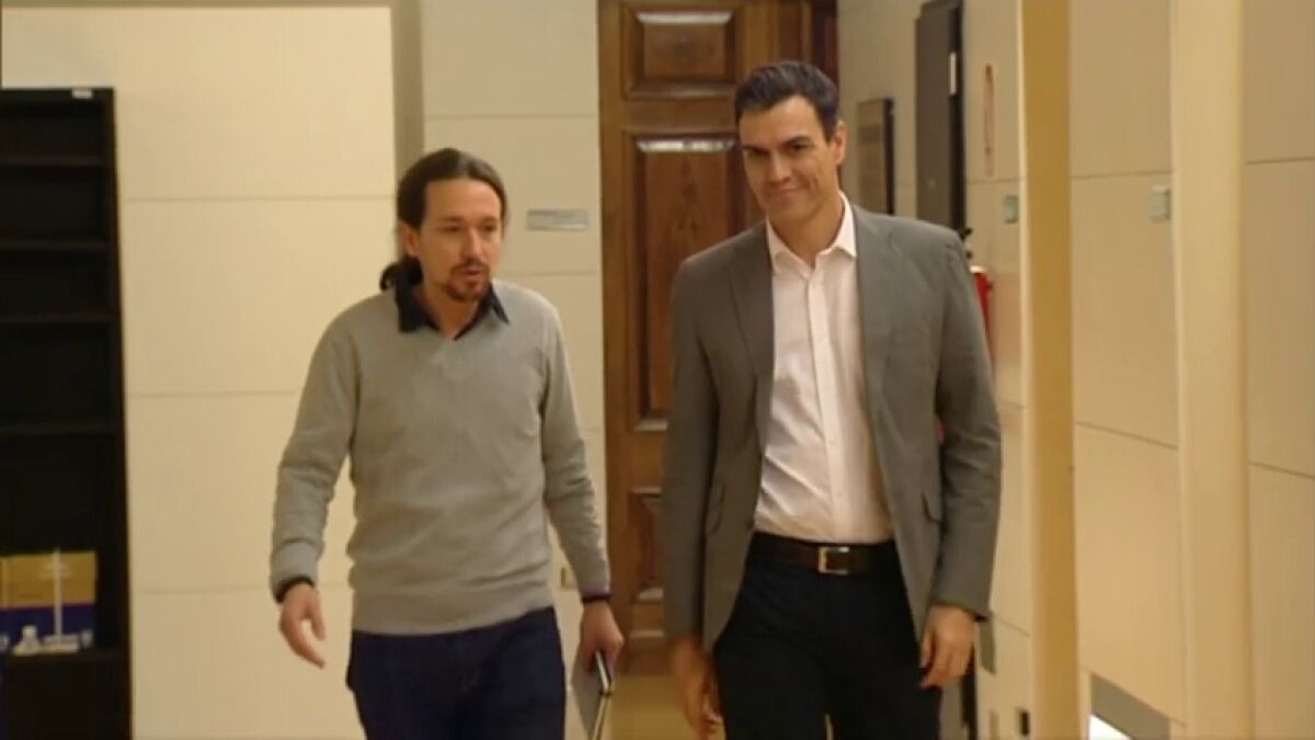 Ahora Sánchez busca gobernar y evitar el 'sorpasso' de Podemos. La pelea entre Iglesias y él no es nueva. Empezó con su frase: "No pacto con populistas", pasó por "trabajaré codo con codo con Podemos" y tuvo momentos de inflexión, como cuando Iglesias se propuso como vicepresidente de un gobierno con los socialistas. Ahora los dos se observan con recelo.