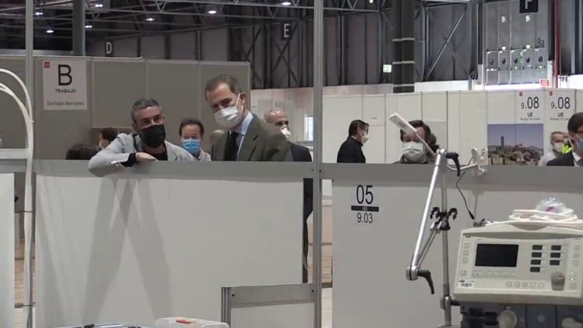 Felipe VI ha visitado, con las debidas medidas de seguridad ante el coronavirus, el hospital de emergencia instalado en el recinto ferial de Madrid. Ha dicho que pasará a la historia como una de las imágenes que se recordarán del esfuerzo que se está haciendo contra la pandemia.
