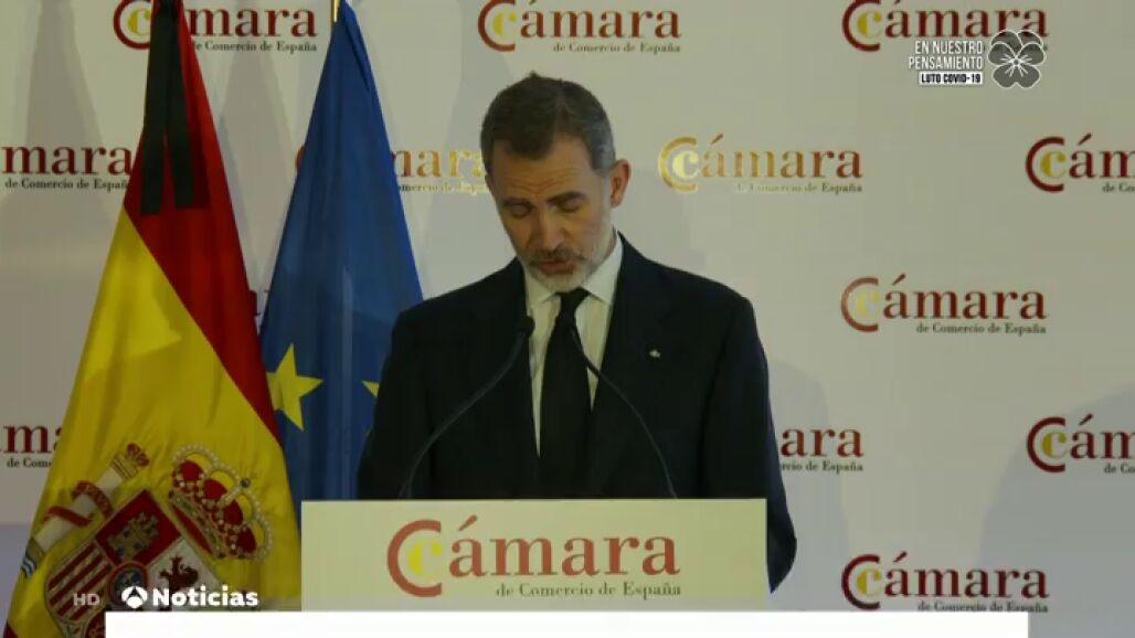Felipe VI ha lanzado este mensaje en favor de la unidad en su intervención en el pleno extraordinario de la Cámara de Comercio que ha presidido en la sede de esta institución en Madrid y que se ha celebrado de forma telemática.