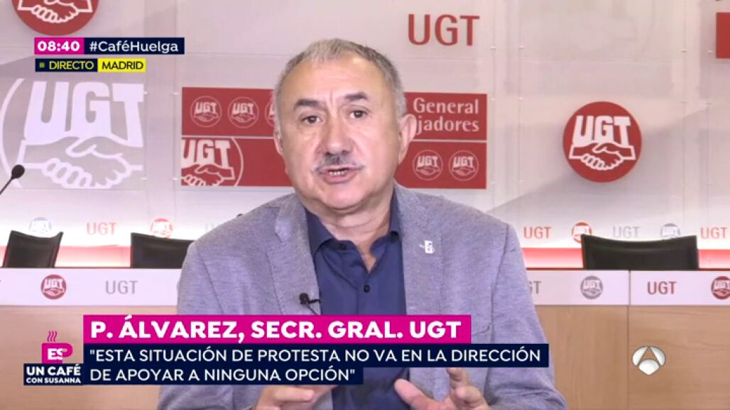 Pepe Álvarez, secretario general de UGT, ha explicado en una entrevista en Espejo Público que la huelga en Cataluña es un "paro de país" porque "no se trata de una huelga general laboral, sino que es un paro político". Por ello, entiende que no se trata de un paro de 24 horas y que cada uno expresará del modo que le parezca más adecuado su desacuerdo "con los acontecimientos que se vivieron el 1-O". En cualquier caso, matiza que "a esto no se le puede llamar una huelga general".