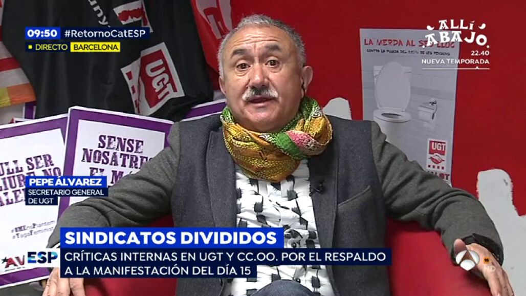 Pepe Álvarez ha explicado que la manifestación que se celebrará el próximo día 14 de abril en Barcelona no será una protesta de apoyo a los 'presos políticos': "Ese no es el eje central de las manifestaciones".