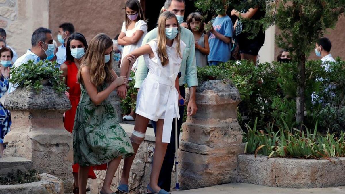 El inicio de las vacaciones de la Familia Real ha sido accidentada. Ayer la infanta Sofía tropezó con un escalón y ha sido necesario darle varios puntos de sutura en su rodilla. A pesar de ello, ha querido acompañar a sus padres y a la princesa Leonor a su visita a localidad de Petra, en Mallorca.