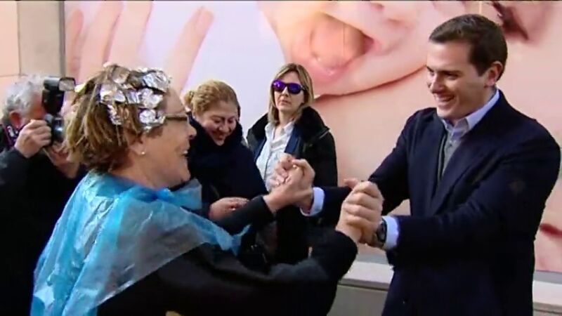 Sin lugar a dudas la más pintoresca la ha protagonizado una señora que salió de la peluquería corriendo con el papel de aluminio en el pelo para saludar al líder de Ciudadanos, Albert Rivera.