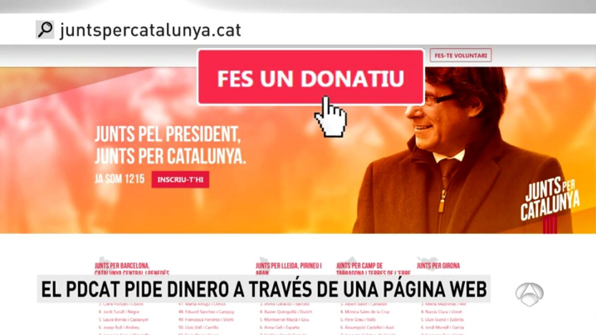 Según figura en la web de la candidatura, www.juntspercatalunya.cat, se invita a las personas a hacer donativos de 15, 30, 60 euros o de otra cantidad, y se asegura que con el donativo se "hace posible la campaña que hará volver al presidente y a los presos políticos".