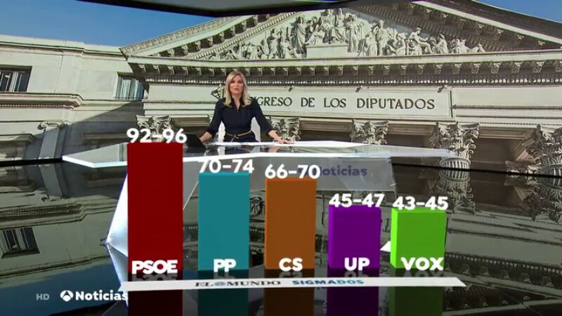 Otra encuesta, en este caso de Sigma Dos para El Mundo, revela que PSOE ganaría ahora las elecciones pero los partidos de centroderecha, contando con VOX, serían la opción mayoritaria. En cuanto a este último, revelan que irrumpiría con fuerza logrando hasta 45 diputados.