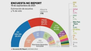 El PP se afianzaría como la fuerza más votada de celebrarse unas elecciones ahora mismo aunque necesitaría el apoyo de Vox para gobernar, según la última encuesta de NC Report para La Razón.