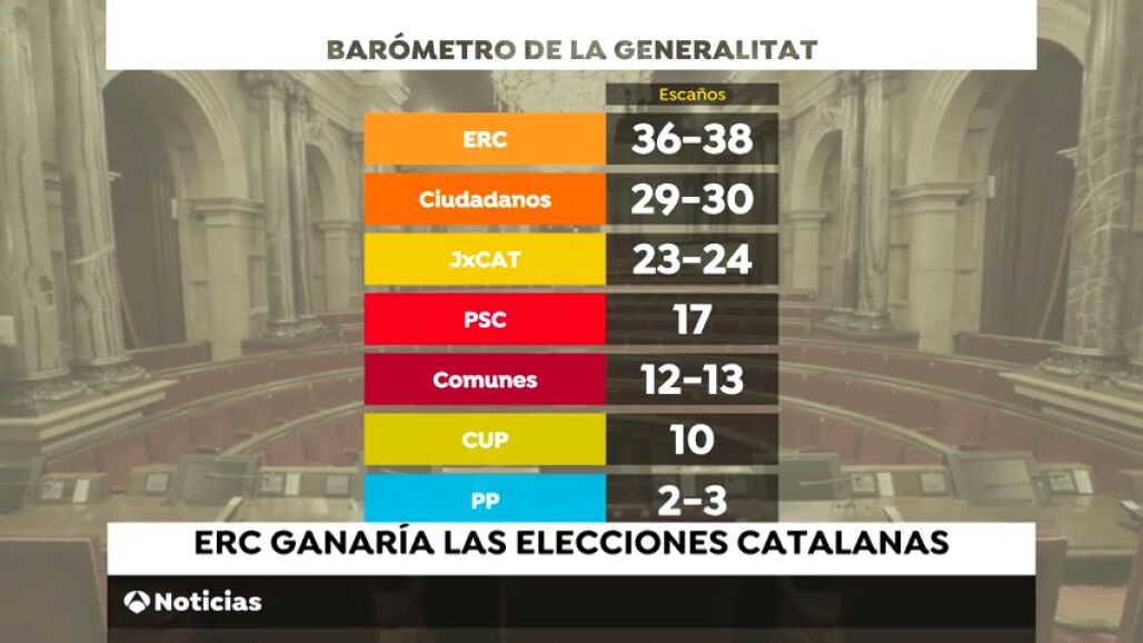 ERC ganaría las elecciones autonómicas en Cataluña obteniendo entre 36 y 38 escaños, seguida de Ciudadanos, que bajaría a 29-30 representantes, mientras que Junts per Catalunya perdería casi 10 escaños, aunque las fuerzas independentistas revalidarían la mayoría absoluta gracias a la subida de la CUP.