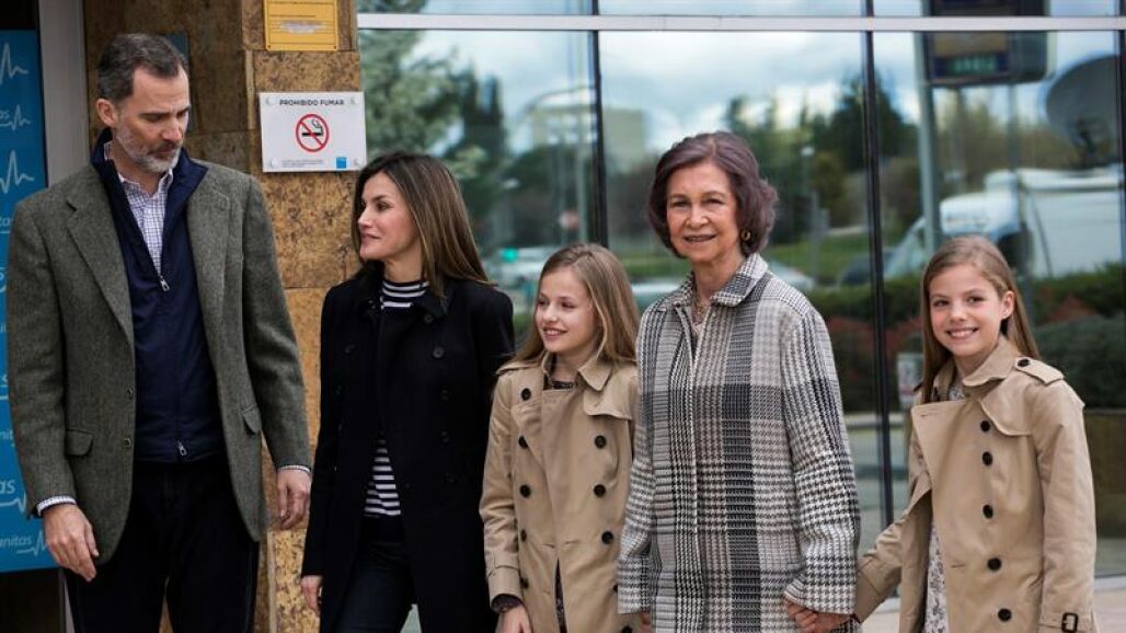 La abuela y sus nietas se dirigieron juntas de la mano hasta la puerta del centro hospitalario donde posaron junto a los reyes para los fotógrafos. Una imagen que no se pudo producir durante la Misa de Pascua celebrada en Palma, donde al finalizar la homilía, la Reina Sofía se preparó para posar junto a sus nietas, momento en el que la Reina Letizia paseó delante de ellas impidiendo que se tomara la fotografía.