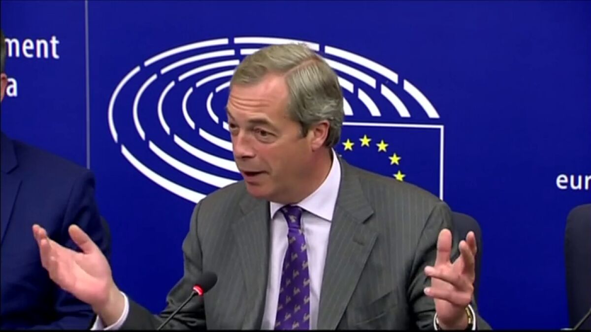Farage, al PP en la Eurocámara: "Nunca hubiera pensado que vería a la policía de un Estado miembro hiriendo a 900 personas"