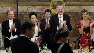 Felipe VI, acompañado por la reina Letizia, ha transmitido este mensaje en la cena de gala ofrecida en el Palacio Real al presidente chino, Xi Jinping, al término de su visita de Estado a España, que, según el monarca, ha permitido "la consolidación del diálogo amigo con China" y una nueva etapa que "escale hacia nuevas y más altas cotas".