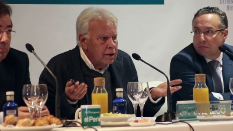 En declaraciones en "Los Desayunos de El Periódico de Extremadura", ha expresidente del Gobierno, Felipe González, ha comentado que actitudes como la de Gabriel Rufián "pone en crisis a las instituciones", pues alrededor de este tipo de situaciones surge un debate parlamentario "de vuelo bajo".